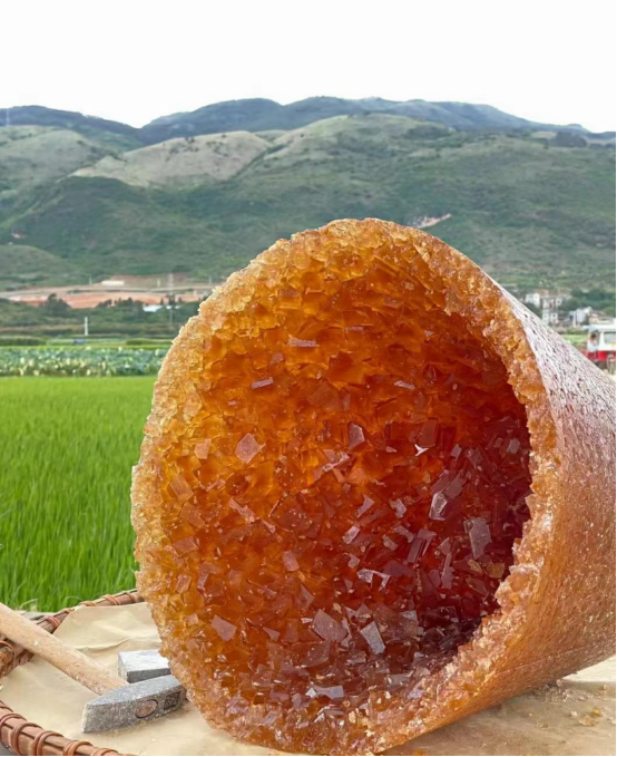 源自云南弥勒竹园的制糖历史,已有百年之久。弥勒竹园黄冰糖技艺,于2023年被正式列入弥勒市级非物质文化遗产名录。我们守护的不仅是一口老味道,更是一部活的制糖史。传统工艺制作,保留天然矿物质与微量元素,甜而不腻,带有焦糖与甘蔗的复合香,天然琥珀色,是矿物质与糖蜜的天然留驻。琥珀色的晶体,是阳光与时间的馈赠,不仅仅是调味品,更是一件可以品尝的“活态”非遗。
